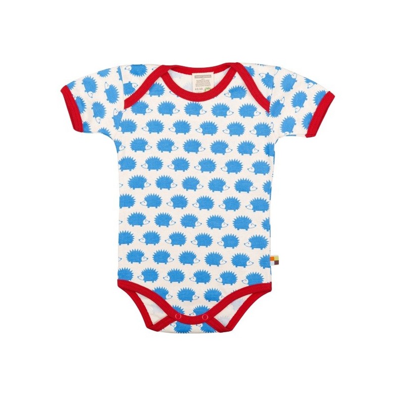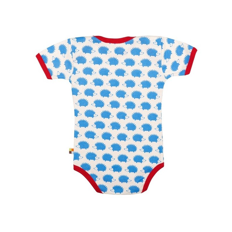 Der Body ist mit einem lustigen Igel-Allover verziert und die Kanten sind mit einem kontrastfarbigen Einfassband abgesetzt.