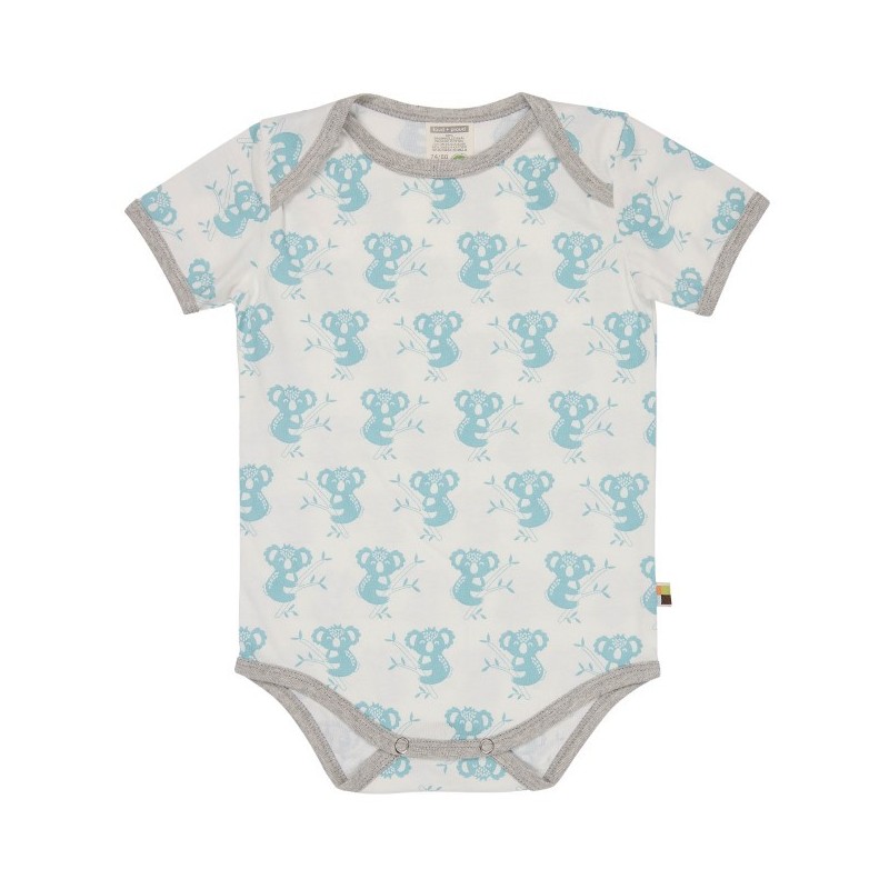 Der Body ist mit einem coolen Koala-Allover verziert und die Kanten sind mit einem kontrastfarbigen Einfassband abgesetzt.