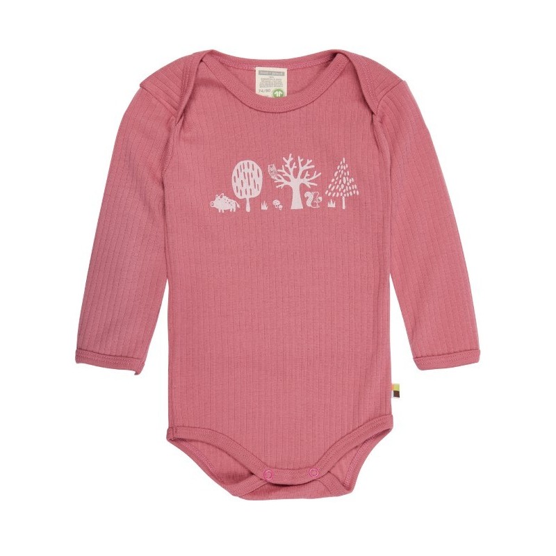 Süßer Baby Body aus Derby Rib (Rippenstruktur) mit Wald-Druck und amerikanischem Ausschnitt.