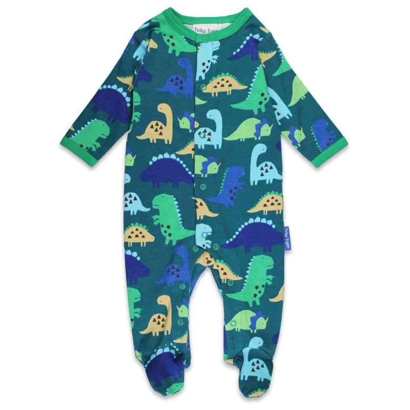 Dieses süße Baby Set besteht aus einem Strampler, Body und einem Mützchen mit Dinosaurier-Druck. Ein perfektes Geschenk zur Geburt oder Taufe.