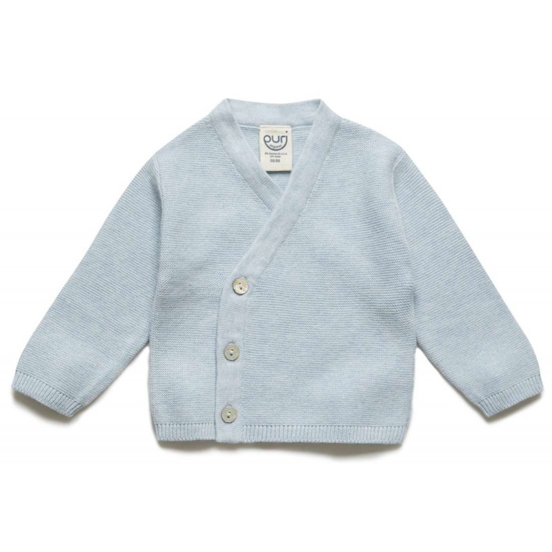 Weicher Baby Strickcardigan aus weichem, warmen und formstabilen Krausstrick. Mit durchgehender Knopfleiste aus abgerundeten Perlmuttknöpfen.