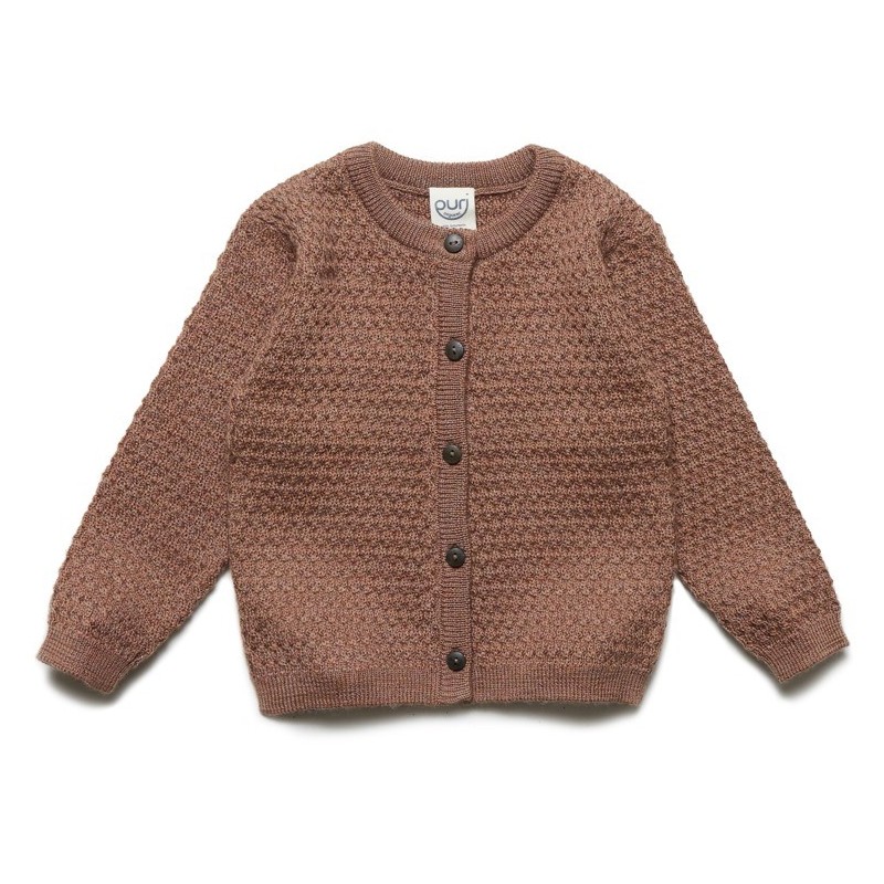 Weicher Baby Strickcardigan aus weichem, warmen und formstabilen Strukturstrick. Mit durchgehender Knopfleiste aus abgerundeten Hornknöpfen.