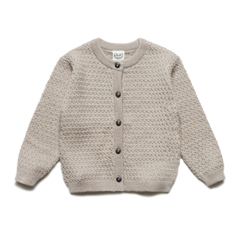 Weicher Baby Strickcardigan aus weichem, warmen und formstabilen Strukturstrick. Mit durchgehender Knopfleiste aus abgerundeten Hornknöpfen.