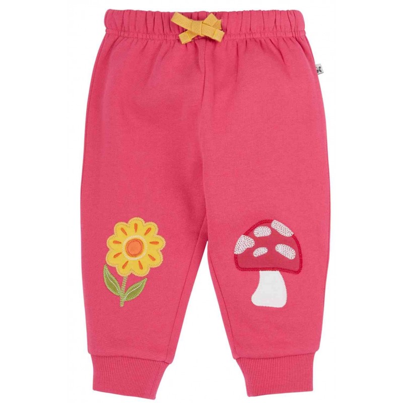 Diese süße Kinder Sweathose mit Fliegenpilz/Sonnenblume-Patches von frugi ist etwas für kleine Naturliebhaber/innen.