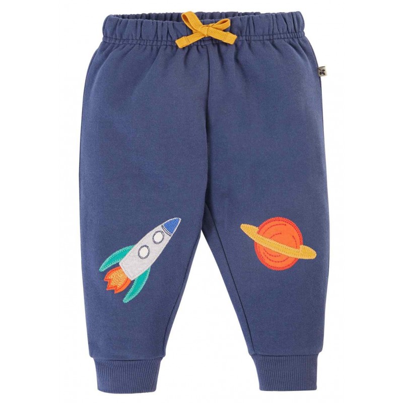Diese coole Kinder Sweathose mit Raketen/Mars-Patches von frugi ist etwas für kleine Astronauten.