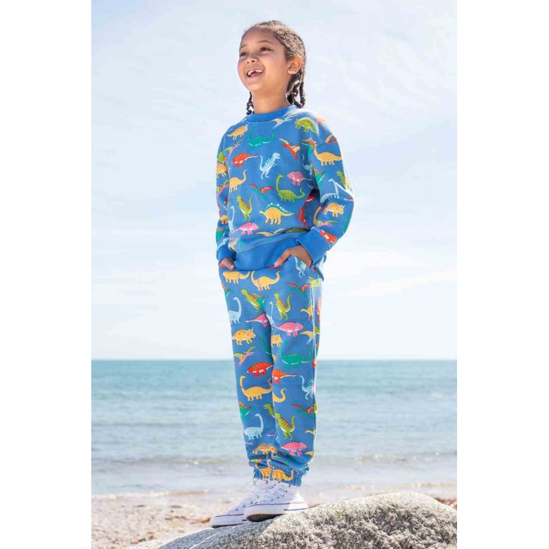 Süße Kinder Sweathose mit Dinosaurier-Allover von Frugi – Farbenfrohe Bio-Mode für kleine Entdecker