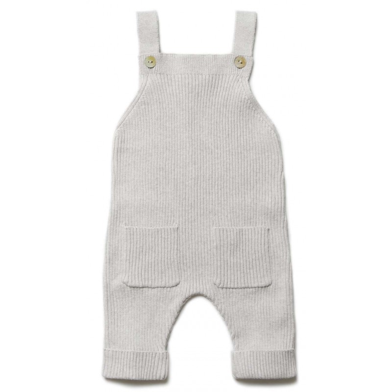 Feine, weiche Baby Stricklatzhose mit zwei aufgesetzten Taschen aus formstabilem Rippenstrick. Die Trägerlänge ist verstellbar mit Perlmuttknöpfen.
