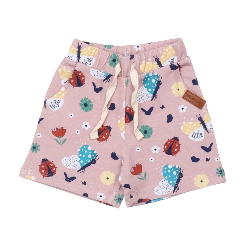 Süße Shorts aus Jersey mit Marienkäfer und Schmetterlingen-Allover und zwei seitlichen Eingriffstaschen.