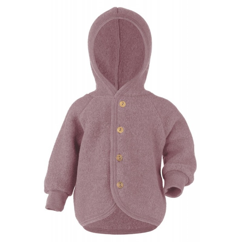 Die kuschelige Fleecejacke ist mit einer durchgehenden Knopfleiste und einer Kapuze gefertigt.