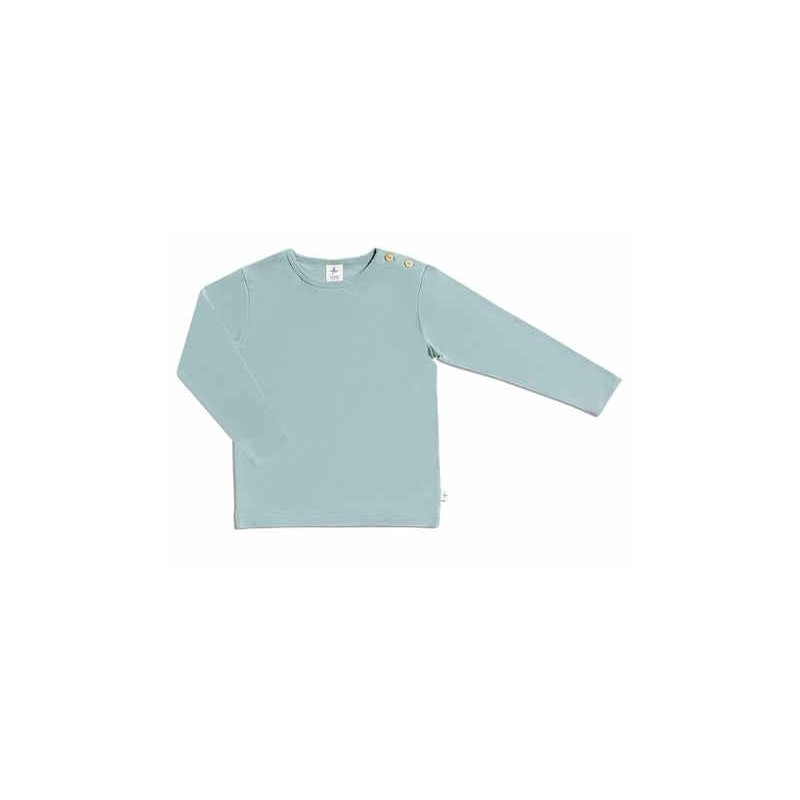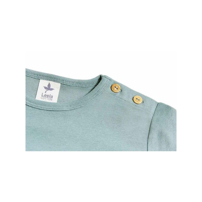 Schönes Basic-Shirt von Leela Cotton. Holzknöpfe an der Schulter bis Gr. 98/104.