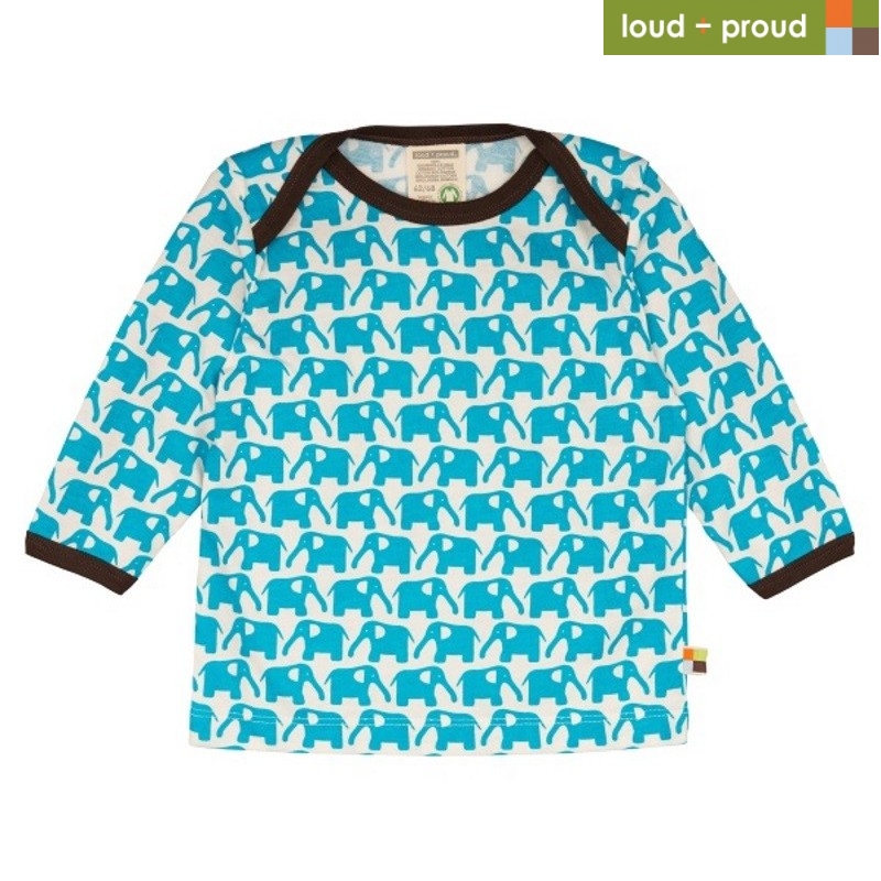 Das lustige Langarmshirt von loud + proud bringt Farbe und Freude in den Kleiderschrank. Das Shirt ist mit einem lustigen Elefanten-Allover verziert und die Kanten sind mit einem kontrastfarbigen Einfassband abgesetzt.