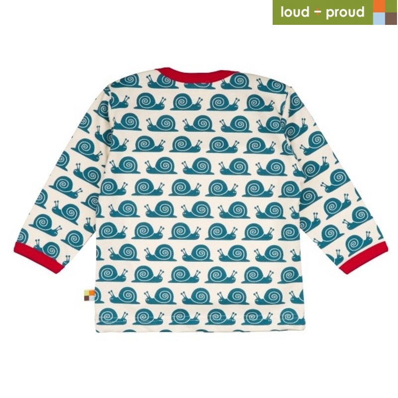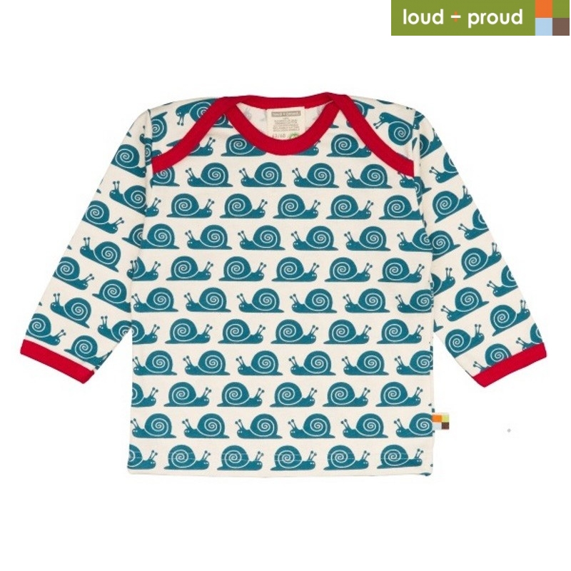Das lustige Langarmshirt von loud + proud bringt Farbe und Freude in den Kleiderschrank. Das Shirt ist mit einem niedlichen Schnecken-Allover verziert und die Kanten sind mit einem kontrastfarbigen Einfassband abgesetzt.