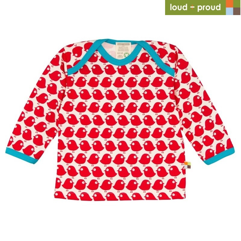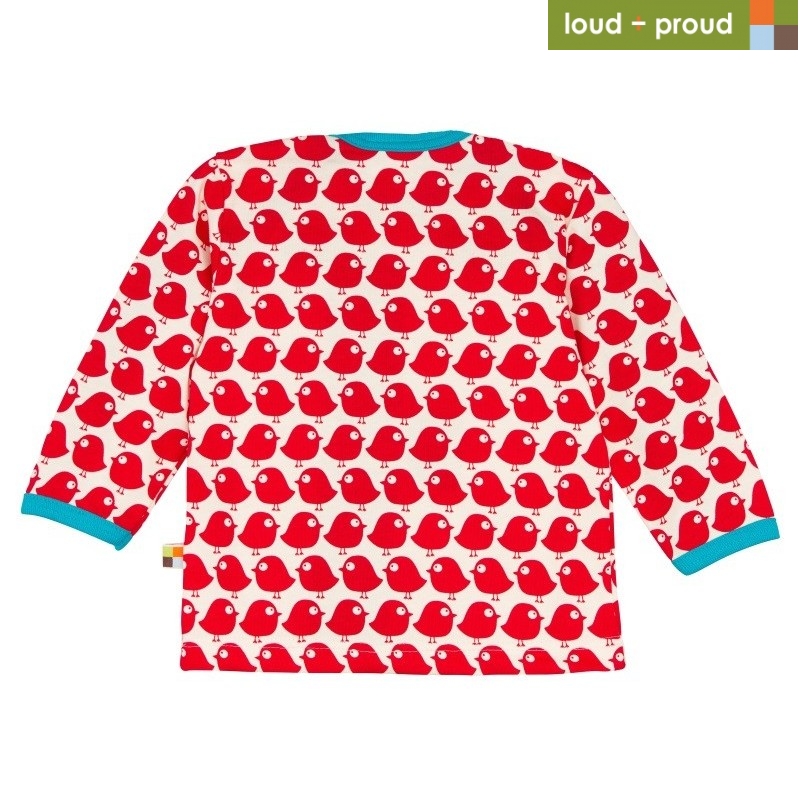 Das lustige Langarmshirt von loud + proud bringt Farbe und Freude in den Kleiderschrank. Das Shirt ist mit einem niedlichen Vogel-Allover verziert und die Kanten sind mit einem kontrastfarbigen Einfassband abgesetzt.