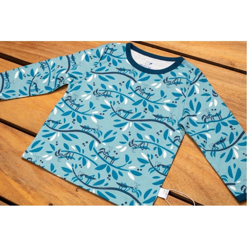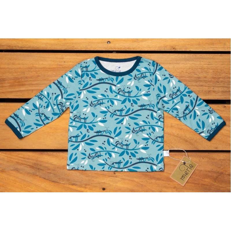 Das Langarmshirt hat ein cooles Gottesanbeterin-Moriv..