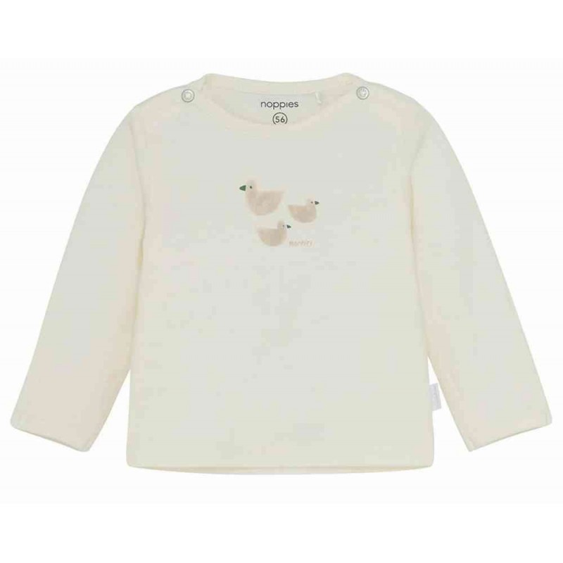 Weiches Baby Langarmshirt mit süßem Enten-Druck aus 100% Bio-Baumwolle von noppies.