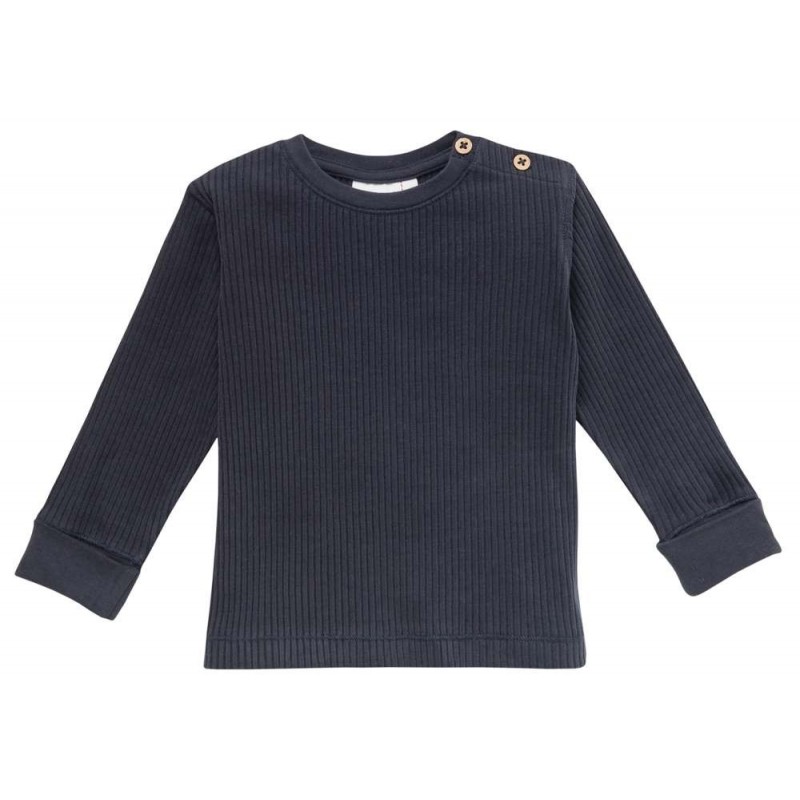Weiches Basic-Shirt mit Rippen-Struktur und Holzknöpfen am Halsausschnitt. Die Armbündchen sind extra breit genäht.