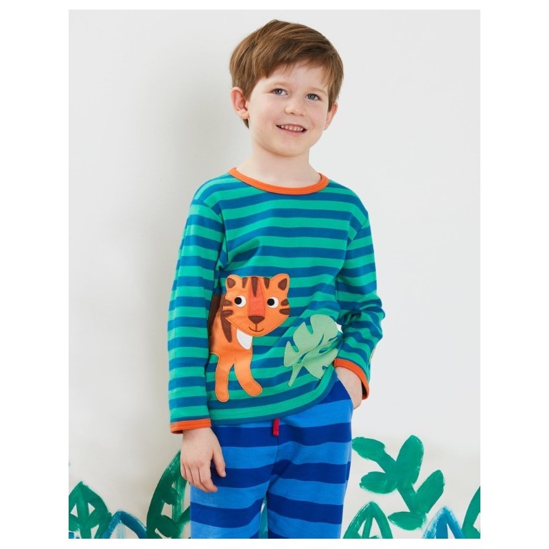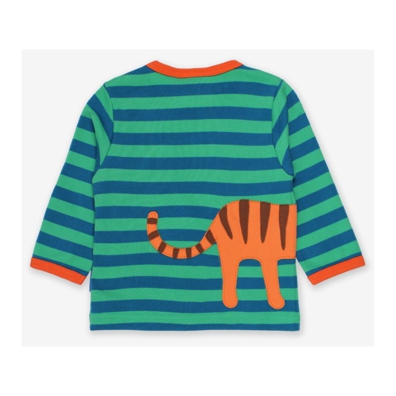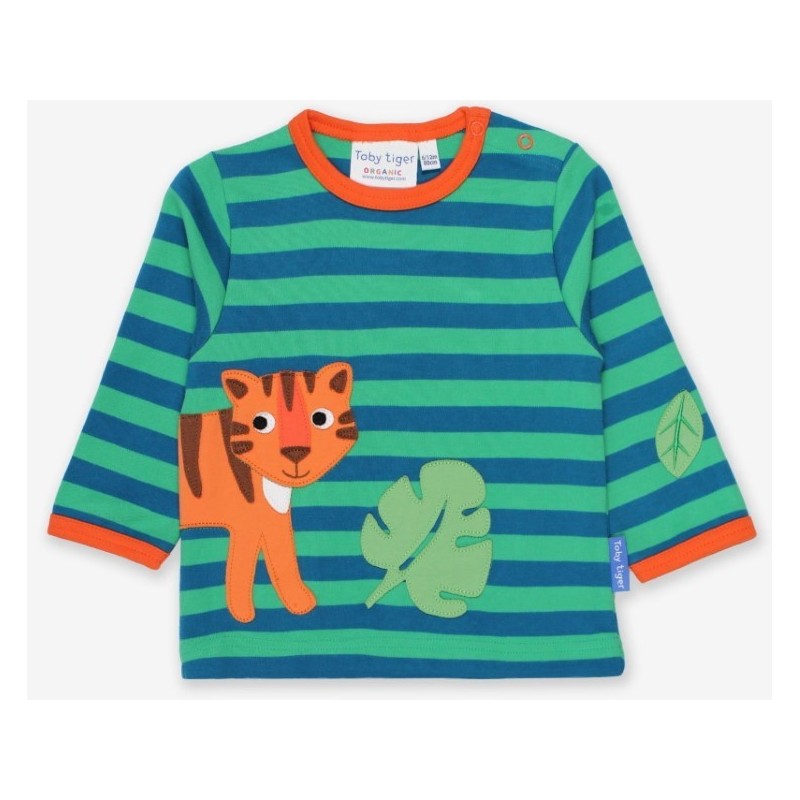 Das Shirt hat eine coole Tiger-Applikation und Streifen.