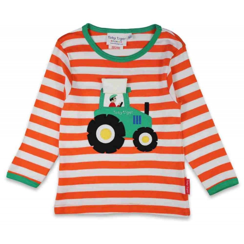 Das Shirt hat eine coole Traktor-Applikation mit kleiner "Überraschung": Man entdeckt beim Hochheben des Fahrerhäuschens den Traktorfahrer.