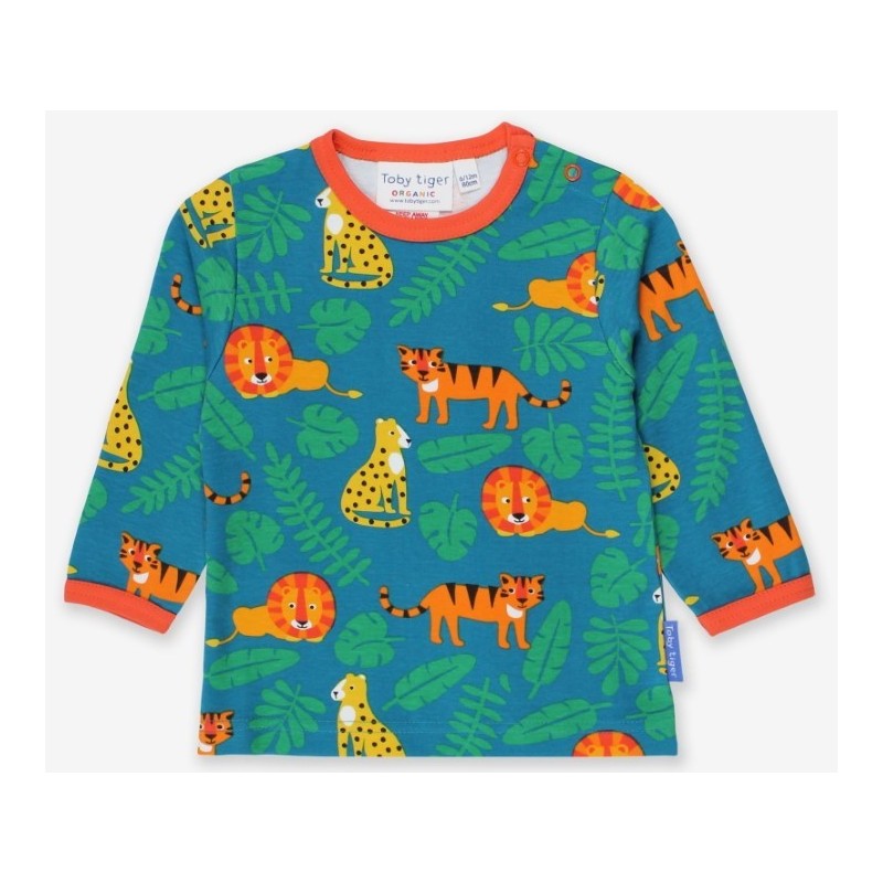 Kunterbuntes Shirt von toby tiger bringt Farbe in den Kleiderschrank Ihres Kindes. Das Shirt hat ein süßes Wildkatzen-Allover.