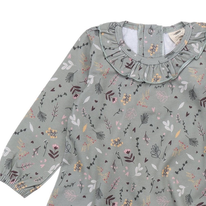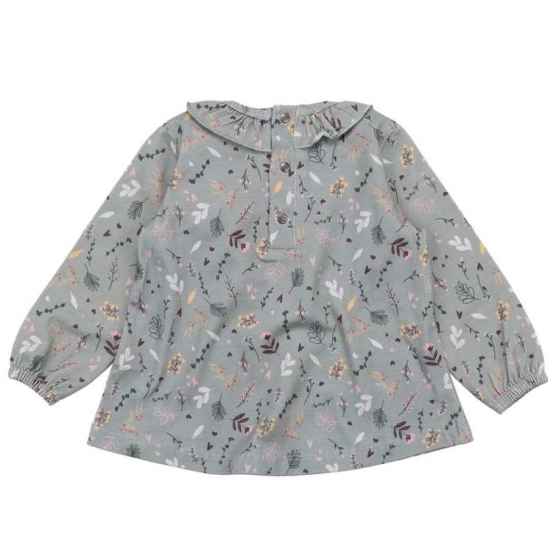Süße Bluse aus Jersey mit Rüschen und kleinem Blumen-Allover. Hinten mit Druckknöpfen zu Öffnen bzw Schlie0en.