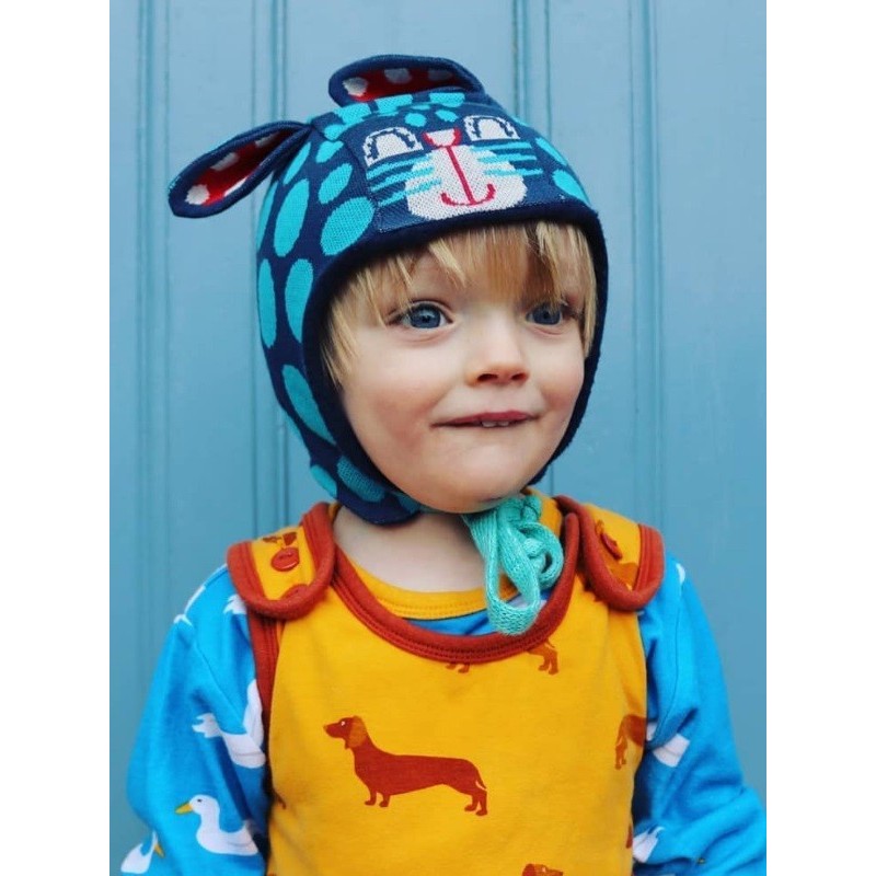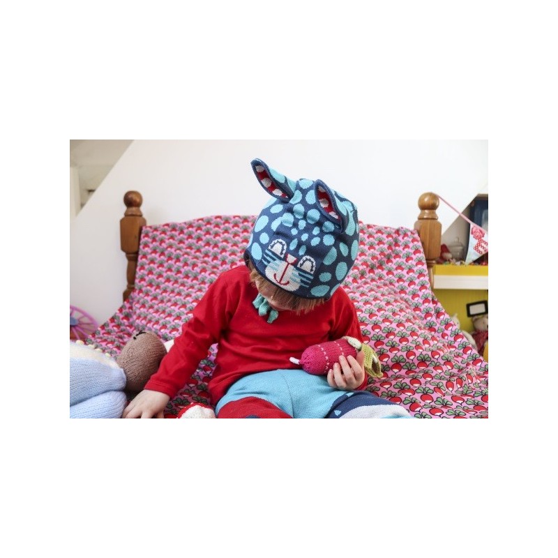 Die Mützen sind aus 100% Biobaumwolle (zertifiziert). Die Musterung ist im Stoff gestrickt (nicht gedruckt, siehe Details!) und sie sind mit dem weichsten Teddystoff gefüttert.