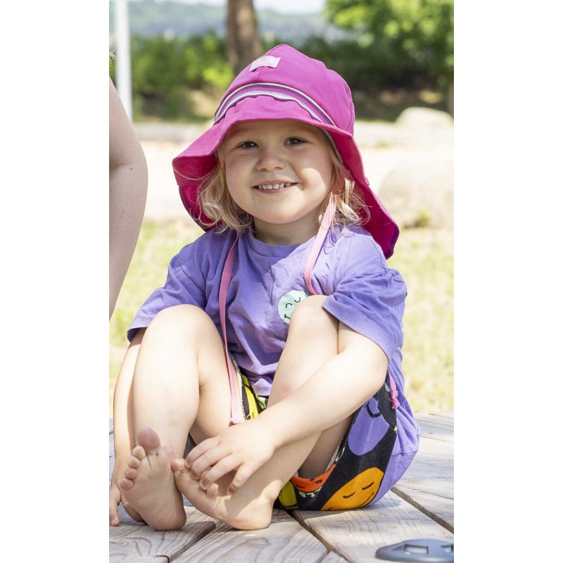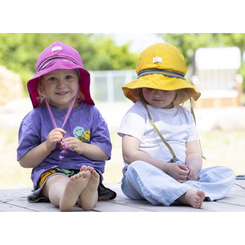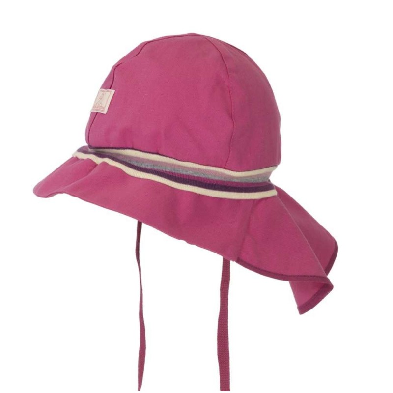 Süße Sonnenmütze mit Strickbündchen und Nackenschutz.
