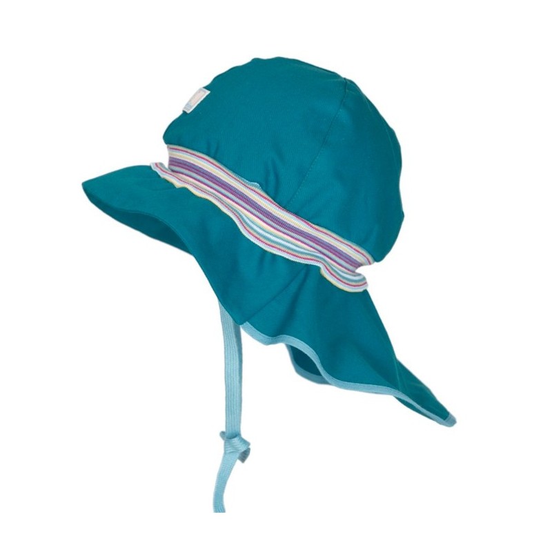 Süße Sonnenmütze mit Strickbündchen und Nackenschutz.