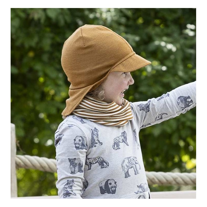 Weiche Wolle/Seide-Mütze mit Nackenschutz.