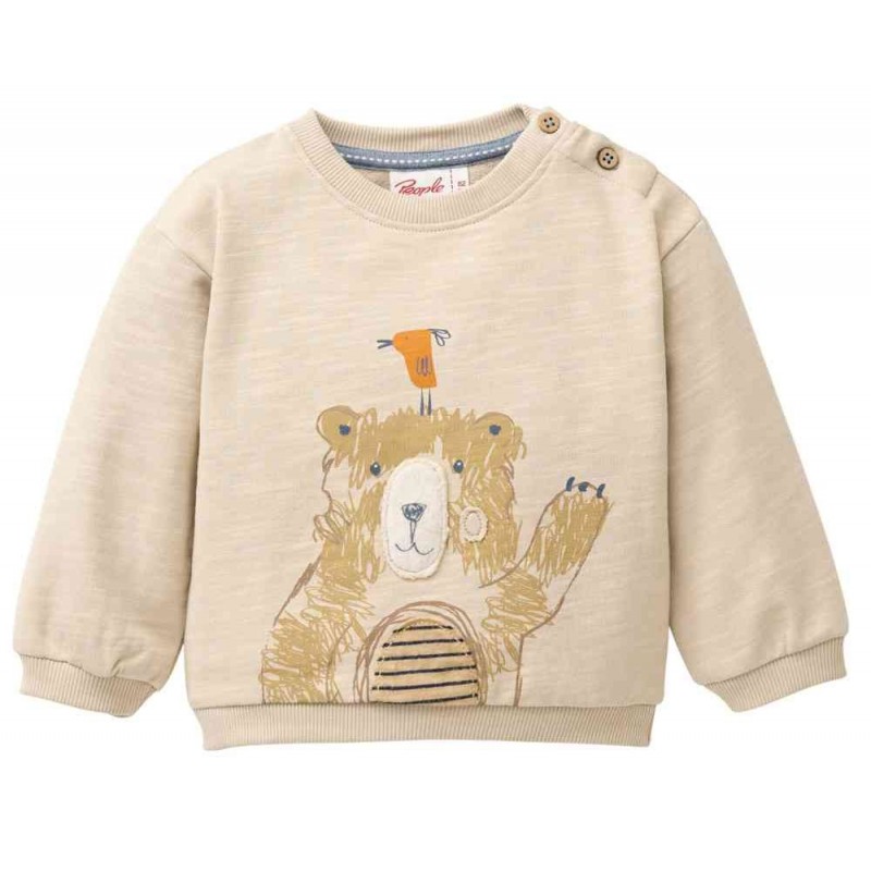 Schönes Baby Sweatshirt aus Slub Sweatstoff mit Bären-Druck von People Wear Organic.