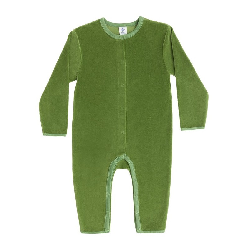 Farbenfroh und verspielt ist der Strampler aus Nickystoff von Leela Cotton! Mit Druckknöpfen vorne und im Schritt.