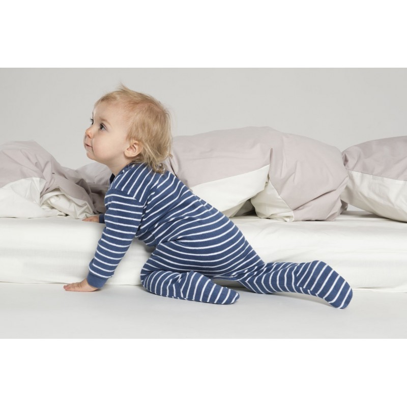 Kuscheliger Baby Strampler von Living Crafts. Der Strampler wird mit Druckknöpfen vorne geöffnet bzw. geschlossen.