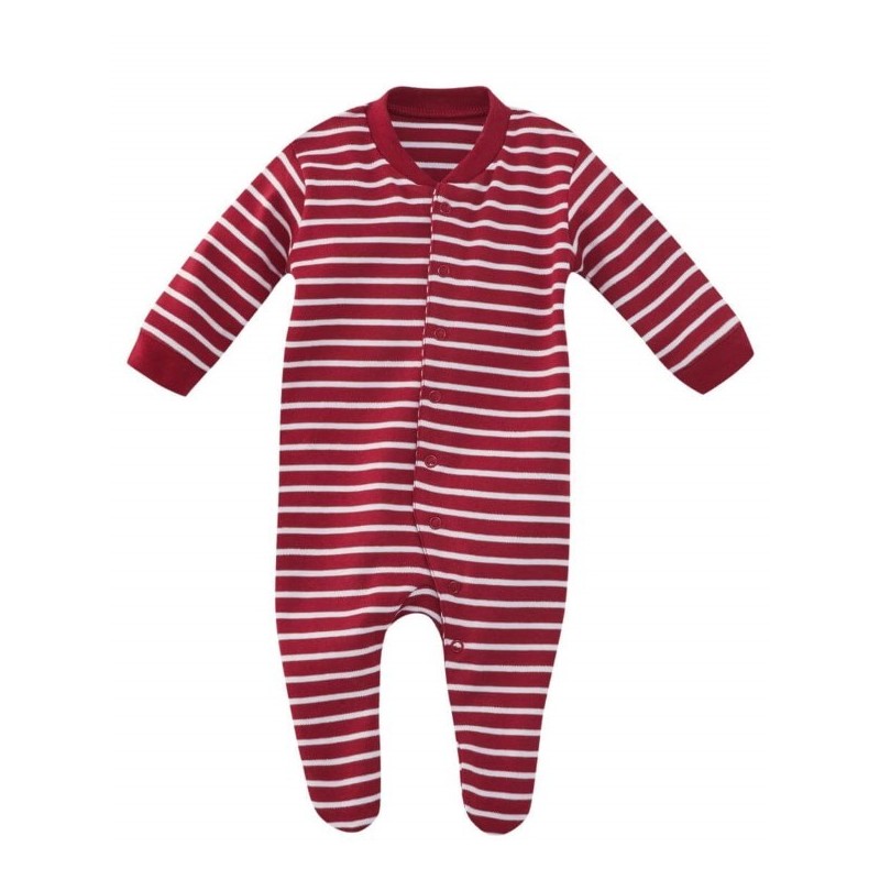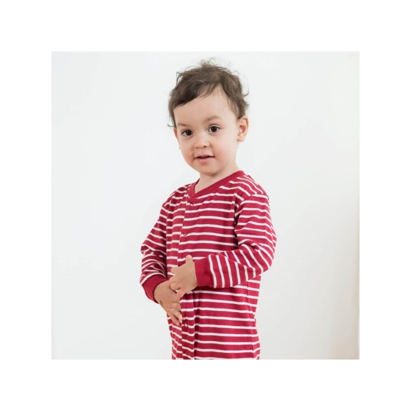Kuscheliger Baby Strampler von Living Crafts. Der Strampler wird mit Druckknöpfen vorne geöffnet bzw. geschlossen.