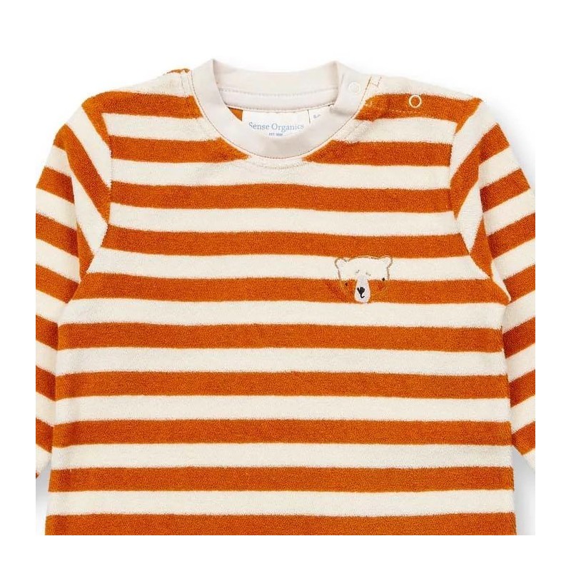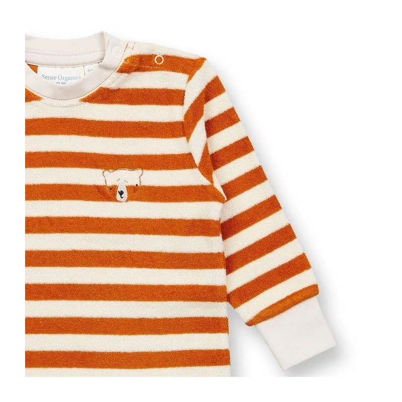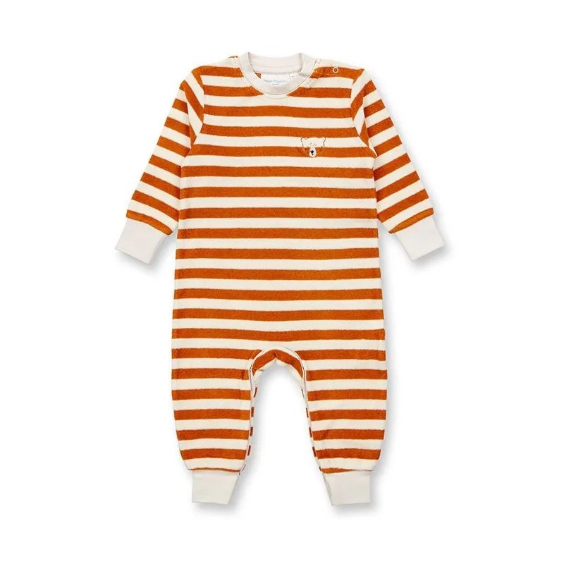 Süßer Babystrampler aus weichem Frottee mit Bären-Stickerei und Druckknöpfen im Schrittbereich.