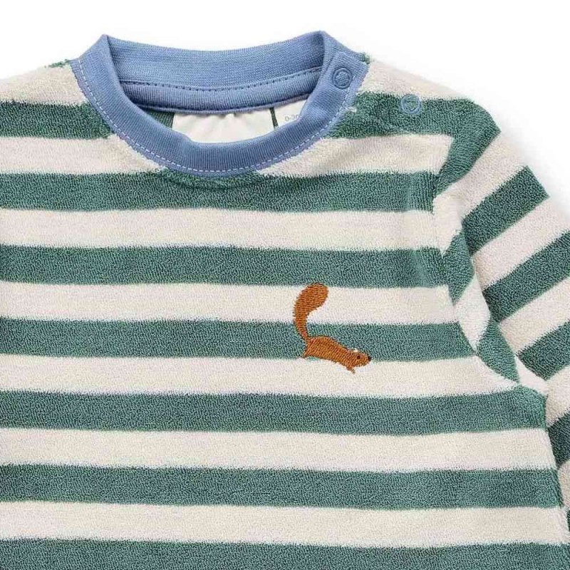 Süßer Babystrampler aus weichem Frottee mit Eichhörnchen-Stickerei und Druckknöpfen im Schrittbereich.