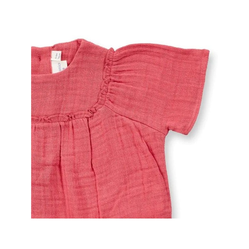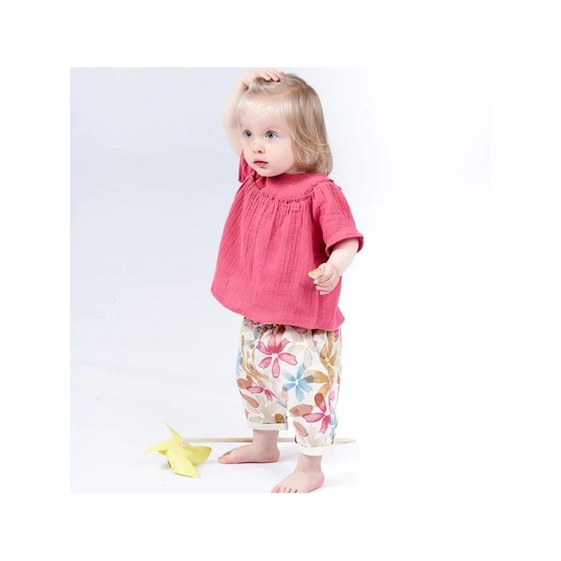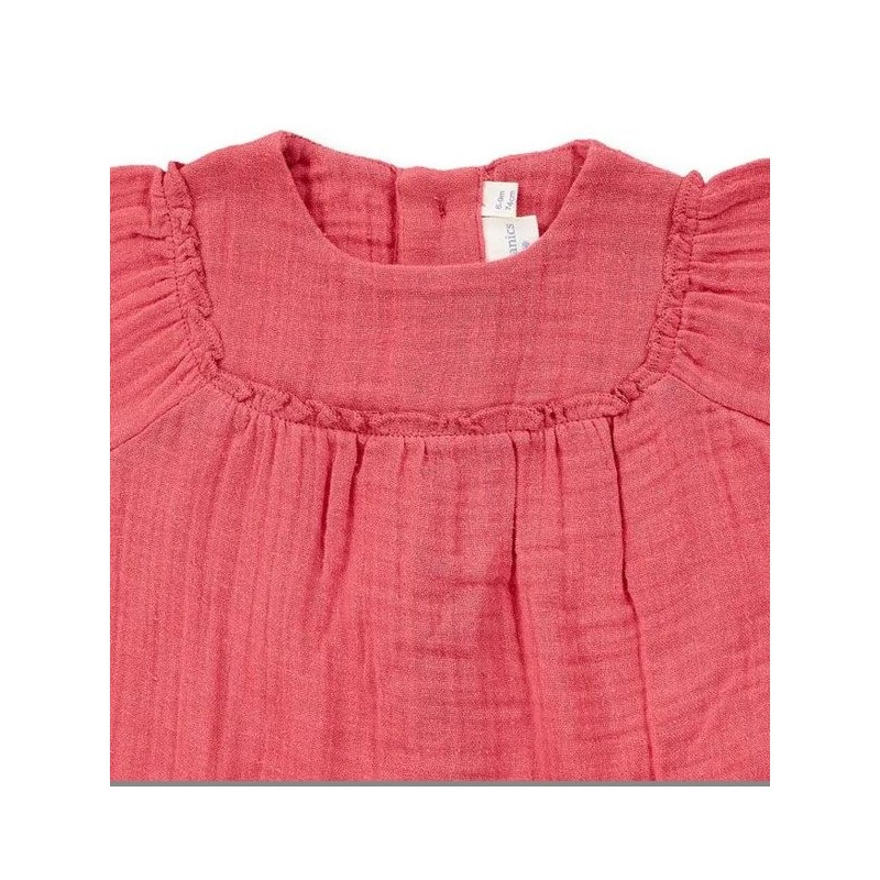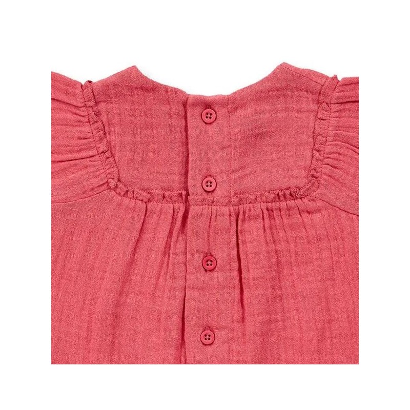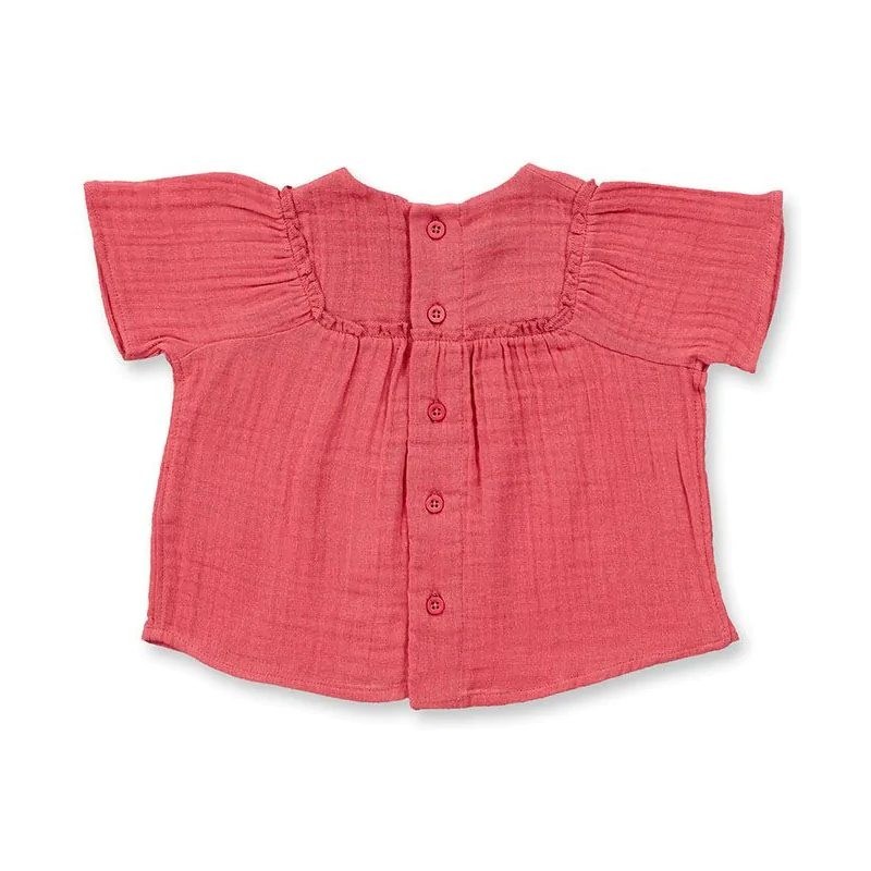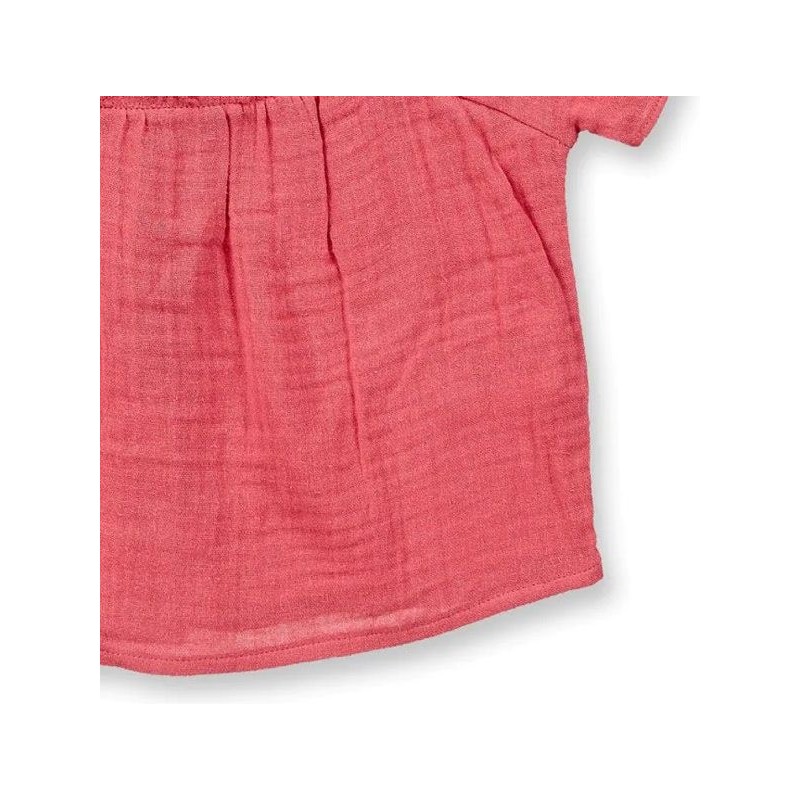 Süße Bluse aus Musselin-Stoff mit Flügelärmelchen und leichter Raffung. Hinten mit Knopfleiste.