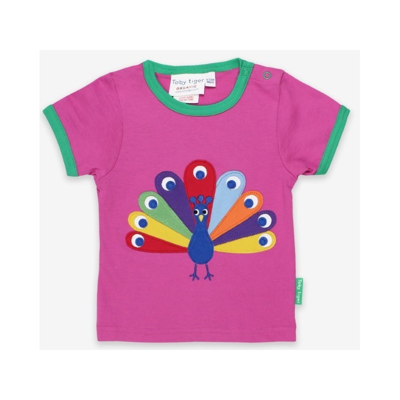 Kunterbuntes Shirt von toby tiger bringt Farbe in den Kleiderschrank Ihres Kindes. Das Shirt hat eine süße Pfauen-Applikation ... einfach zum Verlieben!