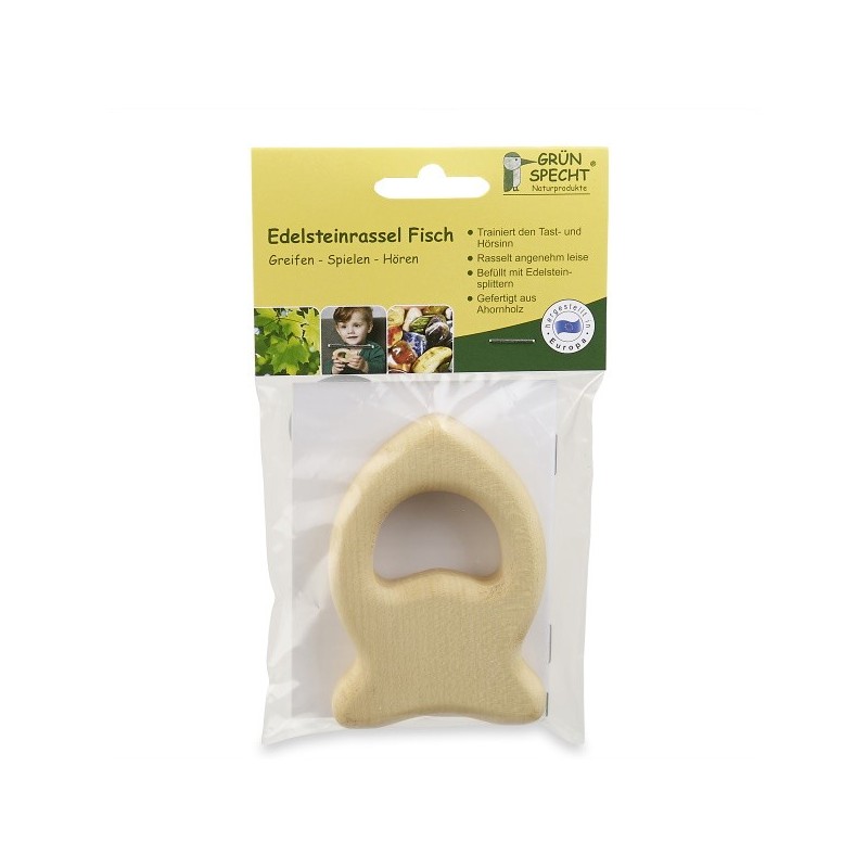 Die Rassel ist ideal für kleine Kinderhände und genau das, wonach Babys Händchen gerne greifen. Befüllt mit einer bunten Mischung aus Edelsteinsplittern rasselt sie für Babys Öhrchen angenehm leise. So können spielerisch erste Erfahrungen gemacht werden und ganz nebenbei werden der Tast- und Hörsinn trainiert.