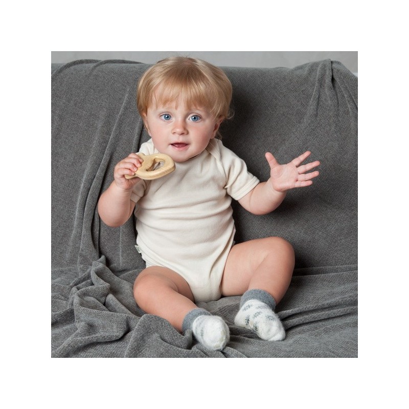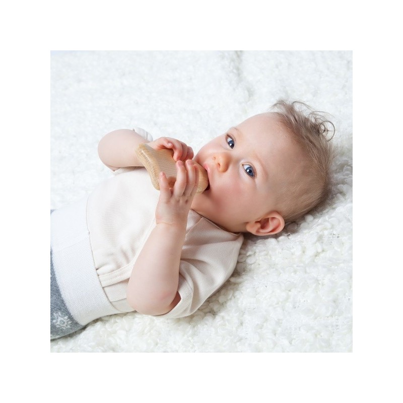 Die Rassel ist ideal für kleine Kinderhände und genau das, wonach Babys Händchen gerne greifen. Befüllt mit einer bunten Mischung aus Edelsteinsplittern rasselt sie für Babys Öhrchen angenehm leise.