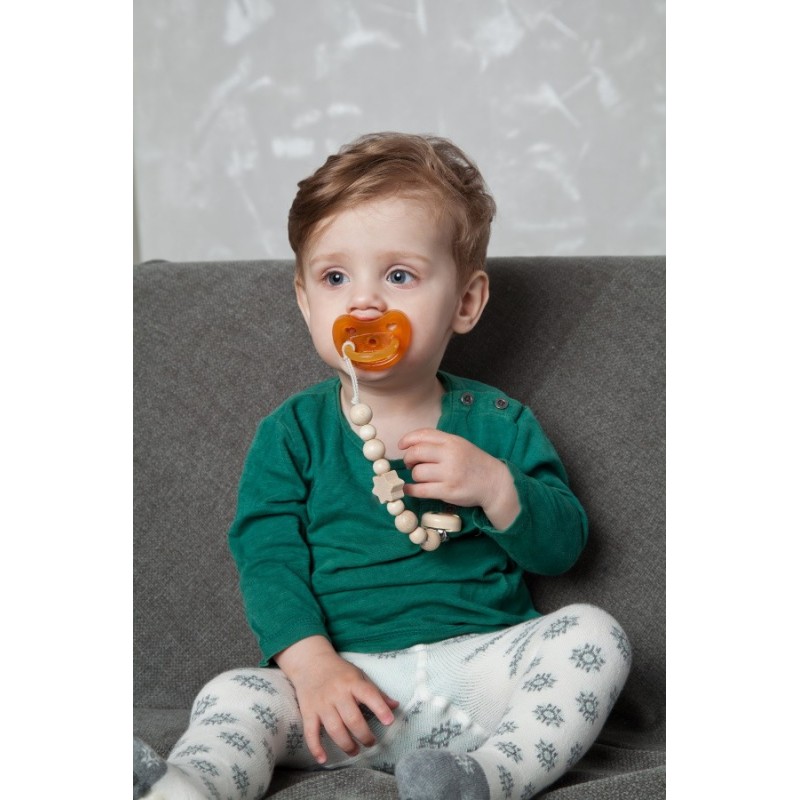 Der GRÜNSPECHT Beruhigungssauger wurde umweltfreundlich und nachhaltig aus Naturkautschuk produziert. Der gerade und weiche Schild in Herzform bietet eine Aussparung für die Nase und ermöglicht die Bewegungsfreiheit der Lippen- und Mundmuskulatur. Die Ventilationslöcher in Herzform verhindern ein Festsaugen und sorgen für eine bessere Luftzirkulation wodurch Hautirritationen vermieden werden können. Den Schnuller erhalten Sie in 3 verschiedenen Größen. Wir empfehlen Größe 1 für Babys von 0 bis 6 Monaten, Größe 2 für Babys von 6 bis 18 Monaten und Größe 3 für Kleinkinder ab 18 Monaten.