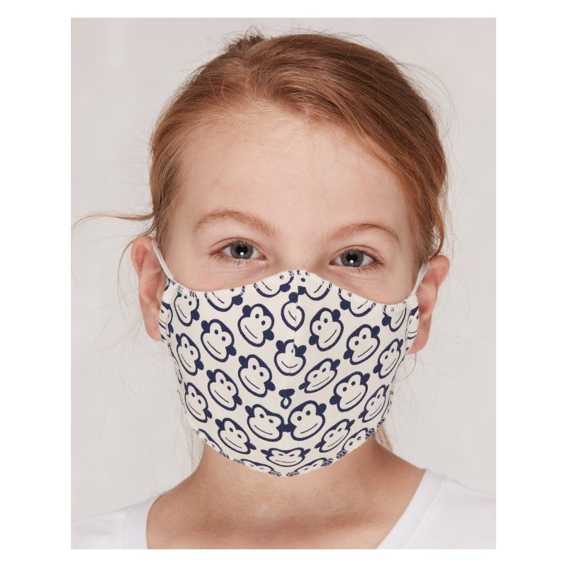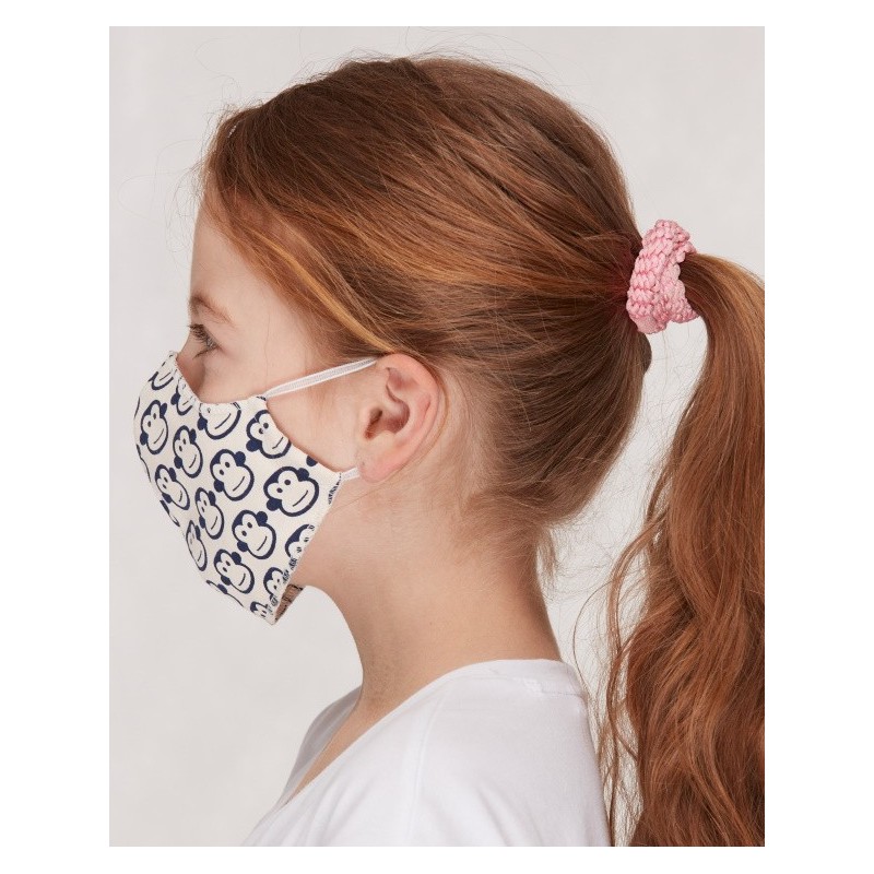 Die Kinder Maske ist mit einem Ohrgummi zur Befestigung und Allover-Druck versehen.