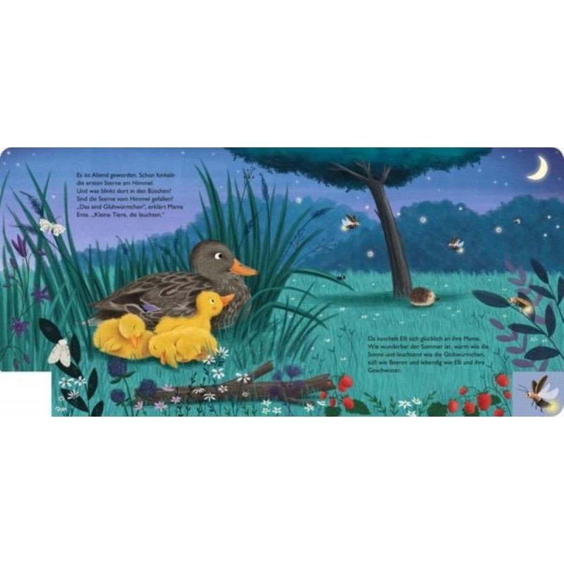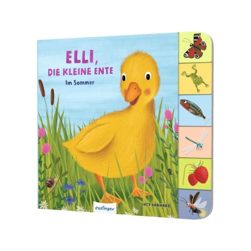 Die kleine Ente Elli entdeckt jeden Tag etwas Neues: den bunten Schmetterling, die Fische im Wasser oder die Erdbeeren, von denen Elli nicht genug kriegen kann. Gemeinsam mit dem niedlichen Entchen können Kinder den Sommer kennenlernen und anhand der Register entdecken, dass der Sommer viele schöne Überraschungen bereithält! Ganz nebenbei wird hier spielerisch der Wortschatz erweitert.