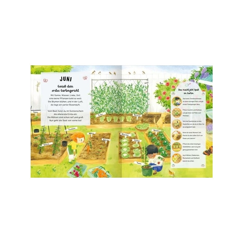 Mit vielen Ideen und praktischen Anleitungen macht das Bilderbuch große Lust auf gemeinsames Gärtnern mit den Kindern – das ganze Jahr über. Begleitet werden die wunderschönen Illustrationen von poetischen Reimen, die einladen, innezuhalten und die kleinen Momente und die Wunder der Natur zu genießen.