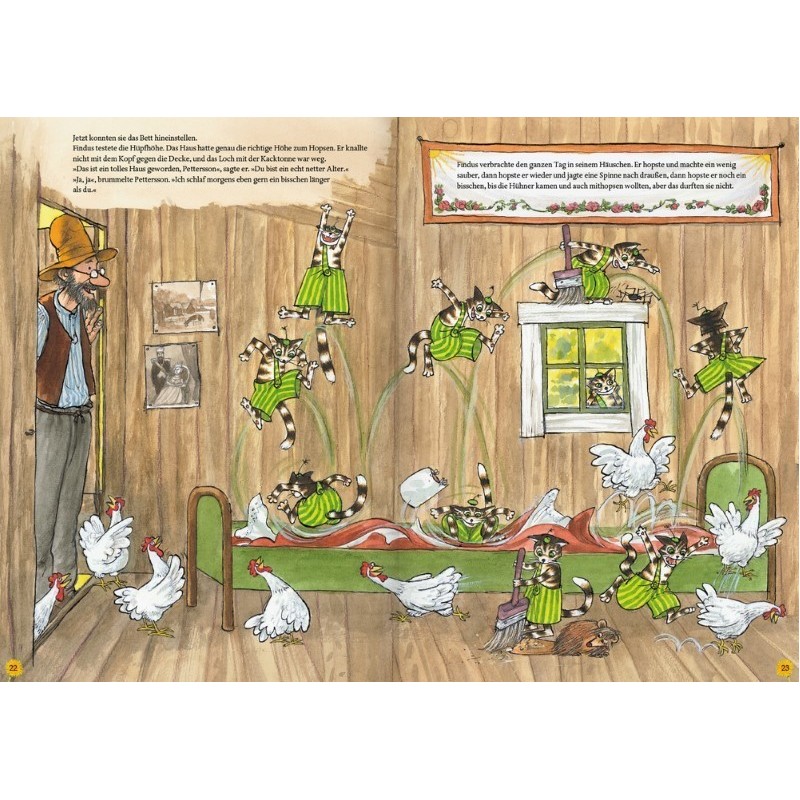 Pettersson und Findus sind wohl das verrückteste Zweiergespann der Welt. Gemeinsam feiern sie gerne und oft Geburtstag, tricksen wild gewordene Rinder aus und pflanzen Fleischklößchen im Gemüsebeet. Doch eines Tages wird es dem morgenmuffeligen Pettersson zu bunt mit seinem Wirbelwind-Kater. Denn der weckt ihn immer viel zu früh mit seinem Gehopse. Pah, dann zieht Findus halt ins alte Plumpsklo! Aber ... ist es zu zweit nicht eigentlich doch am allerschönsten?