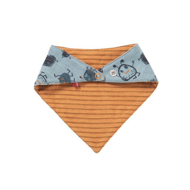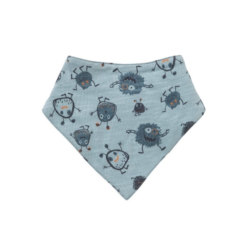 Süßes Baby Tuch mit Monster-Allover und Streifen von People Wear Organic zum Wenden. Das Tuch ist mit einem Druckknopf zu schliessen.