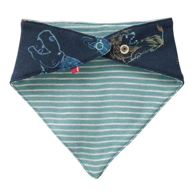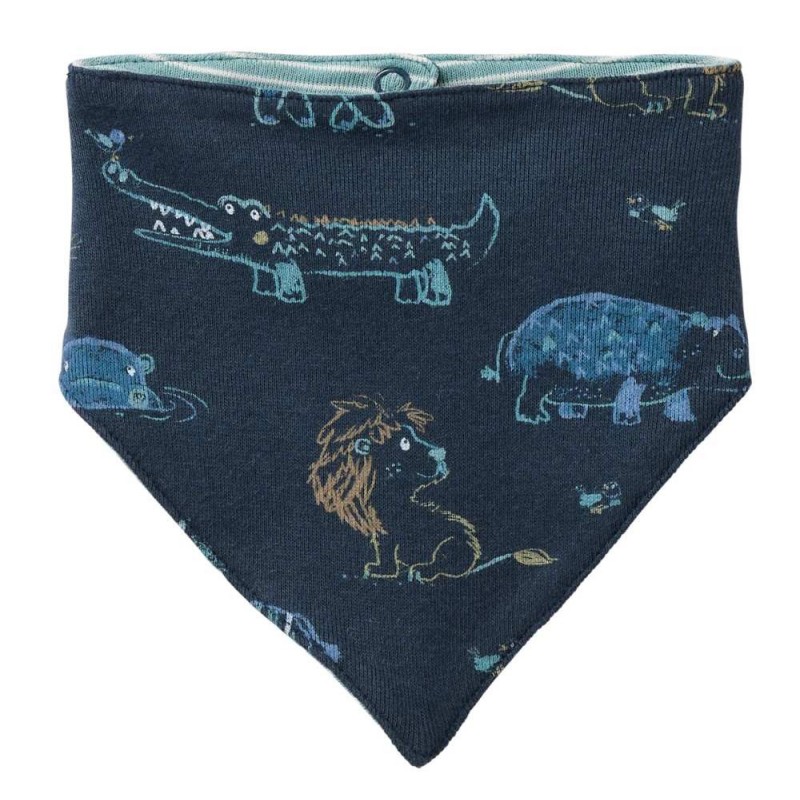 Süßes Baby Tuch mit Savannentiere-Allover und Streifen von People Wear Organic zum Wenden. Das Tuch ist mit einem Druckknopf zu schliessen.