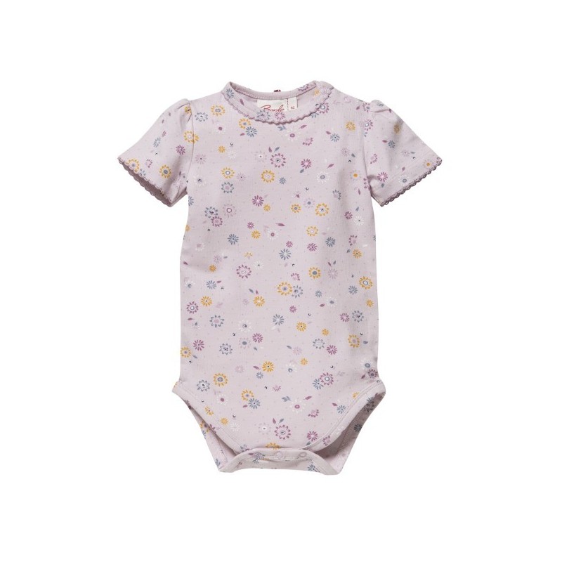 Süßer Body von People Wear Organic mit Frühlingsblumen-Allover. Der Body ist mit Druckknöpfe zu öffnen bzw. schließen um das Wickeln zu erleichtern.