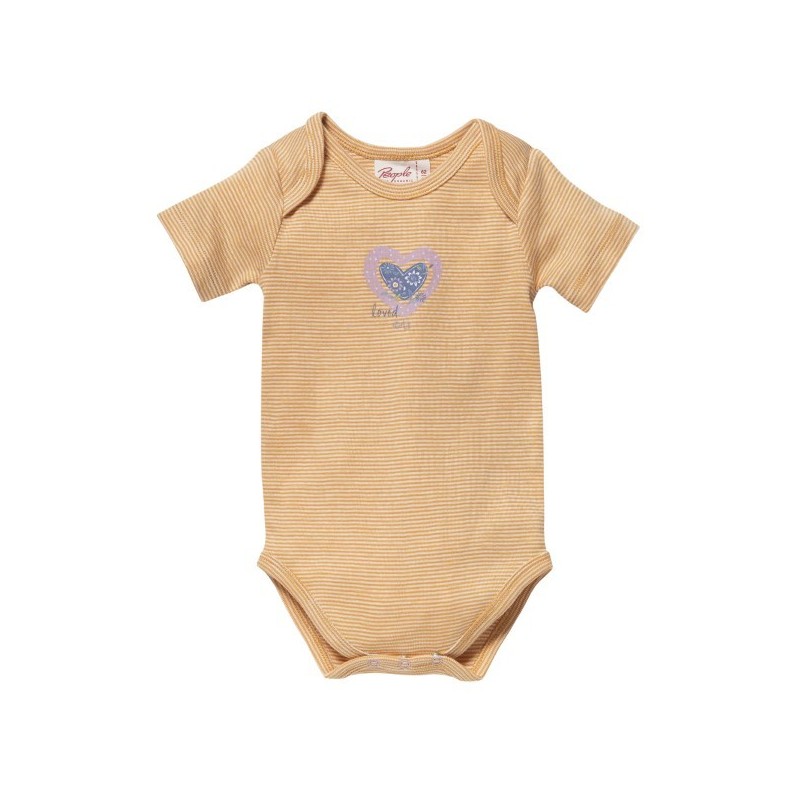 Süßer Body von People Wear Organic mit Herz-Druck und Streifen. Der Body ist mit Druckknöpfe zu öffnen bzw. schließen um das Wickeln zu erleichtern.