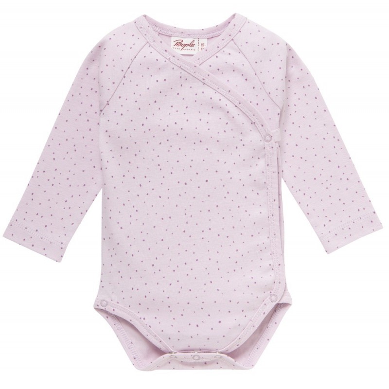 Süßer Wickelbody von People Wear Organic mit Punkten. Der Body ist mit Druckknöpfen im Schrittbereich zu öffnen bzw. schließen um das Wickeln zu erleichtern.