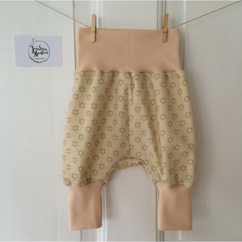 Fräulein Nachbar anziehend.schön ist ein Label aus Kassel, welches seit 2016 Mode und Accessoires für Babys, Kinder und Erwachsene in liebevoller Handarbeit entwirft und näht. Diese Pumphose wird ihr Kind verzaubern - durch die breiten Bein- und Bauchbündchen "wächst" die Hose um ein/zwei Größen mit.