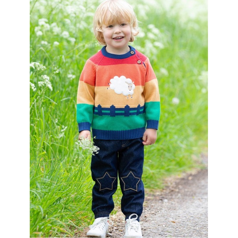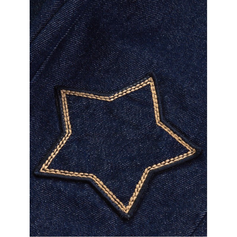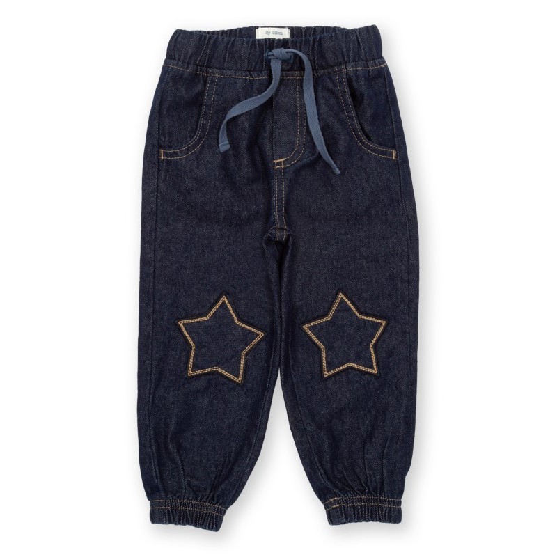 Dünne Sommerjeans mit zwei seitlichen Eingrifftaschen und aufgesetzten Sternen-Patches an den Knien. Das Bauchbündchen und die Beinbündchen sind weich und elastisch.